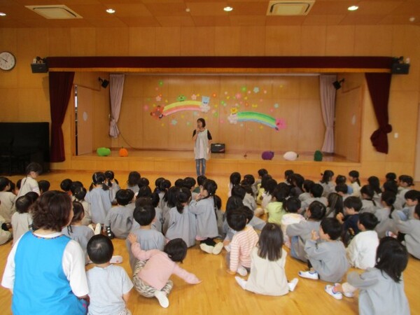 入園式では、理事長の挨拶・園長の挨拶や職員の歌声による園歌の紹介、職員紹介を兼ねての職員の寸劇による行事の