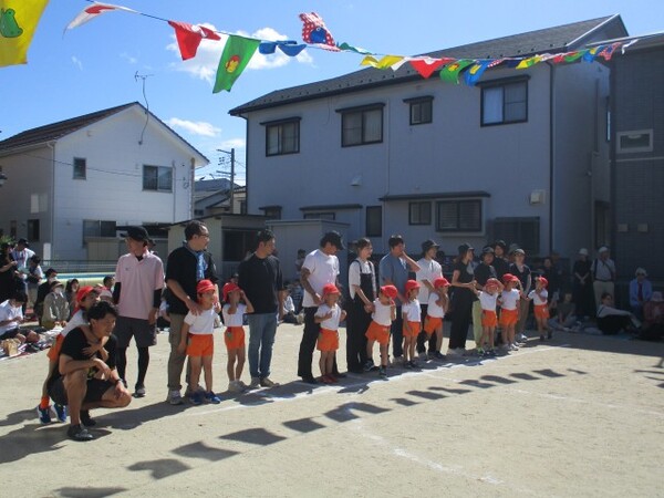 ちゅうりっぷ組の徒競走ではゴールで待ってくれているお家の方を目指して頑張って走っていました。お家の方の所に辿り着くと嬉しくてたくさんの笑顔が