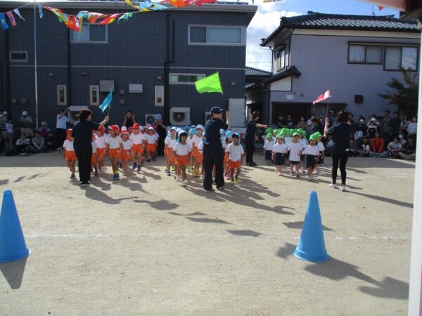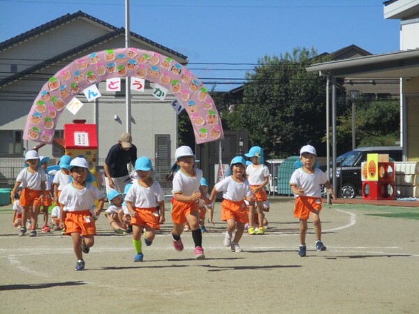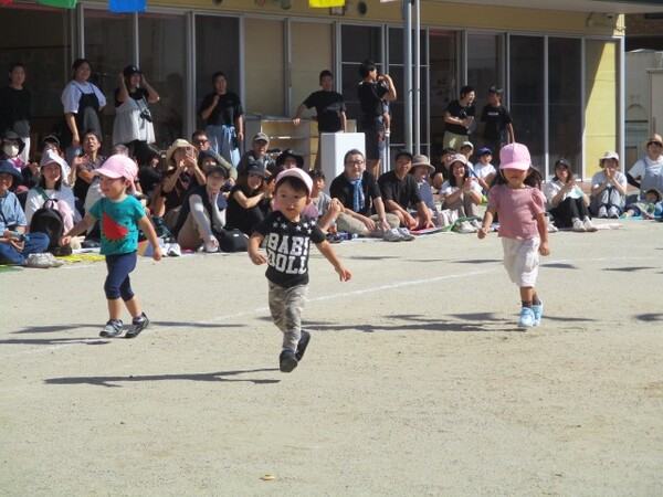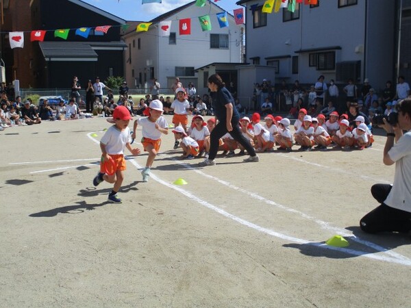 ばら組・ゆり組も徒競走。走るスピードも速くなりゴールに向かって一生懸命走っていました!
