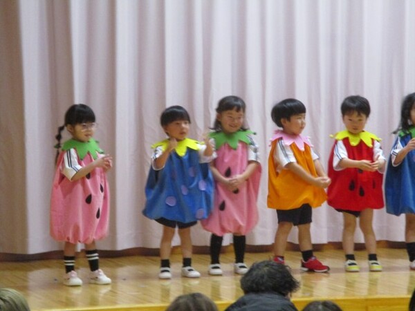 ばら組も遊戯を3曲✨「パイナポー体操」「ぼくたちぶどう」「フルーツポンチ」の曲でちょっぴり恥ずかしくなりながらもかわいく踊りました。