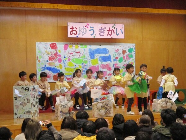 すみれ組の劇では「すいぞくかんごっこ」「クリスマスパーティーごっこ」を楽しく演じていました。